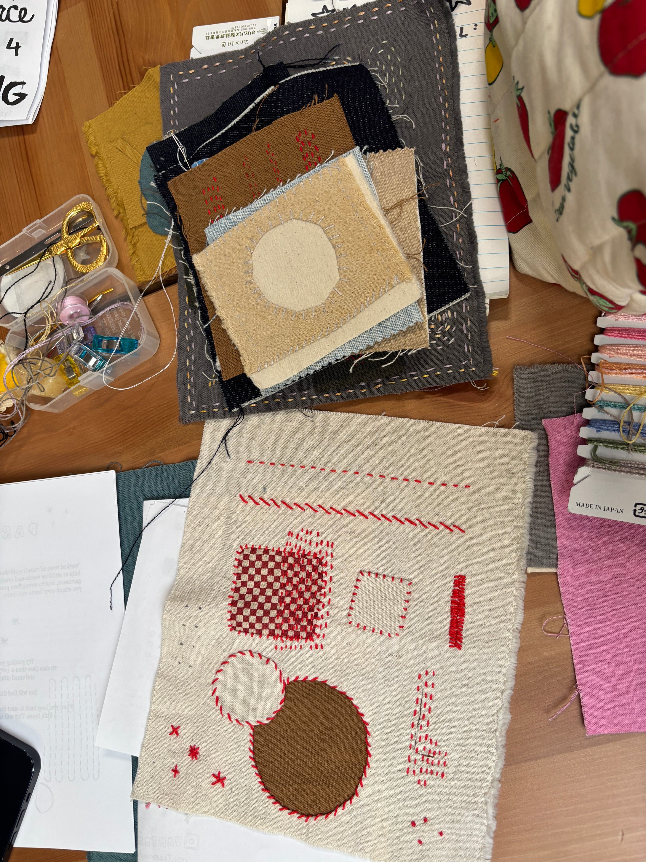 Cost: $65 - total includes a kit: hand sewing #30 thread, a skein of sashiko thread, needles, and cotton/linen canvas fabrics to sample on.